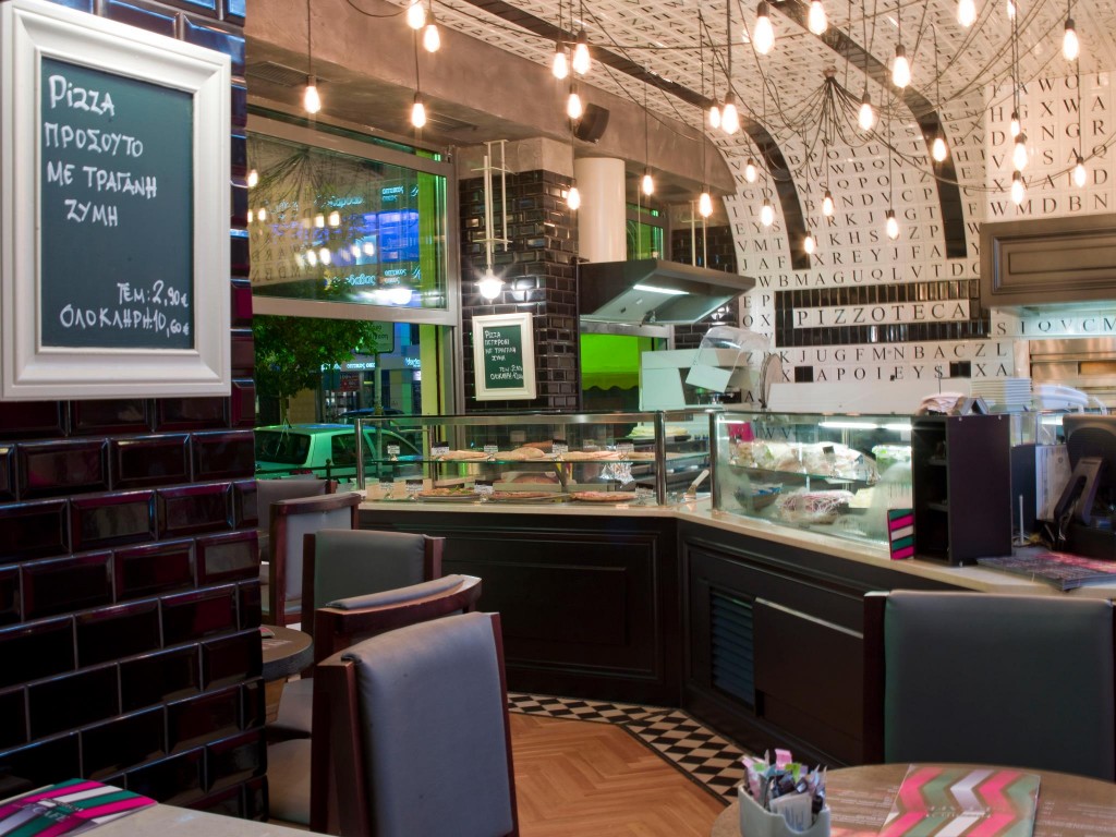 Ο χώρος είναι πολύ μοντέρνος, θυμίζει λίγο Gazi College και το δυνατό του σημείο είναι η γνήσια ιταλική πίτσα σε μέγεθος 40 εκατοστών που προσφέρει.