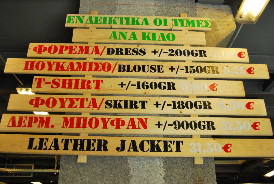 Πρόκειται για το Kilo shop που άνοιξε τις πόρτες του πριν λίγες μέρες στην καρδιά του κέντρου, στο Μοναστηράκι κοντά στα παλιατζίδικα της πλατείας Αβησσυνίας για να ταιριάζει με την αισθητική του vintage. Όπως προδίδει και το όνομα του, ψωνίζεις ανάλογα με το βάρος.Πρακτικά αυτό σημαίνει οτι μπορείς να βρεις vintage σορτσάκι levis με 12 ευρώ σε άριστη κατάσταση.Το σύστημα είναι απλό, όλα τα ρούχα χωρίζονται σε 3 κατηγορίες ανάλογα με την τιμή και το καταλαβαίνουμε από το χρώμα του κάθε button που φέρει το ρούχο.