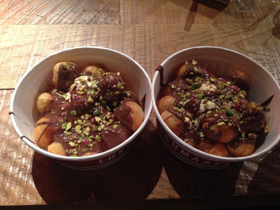 Οι πειρασμοί δεν είναι λίγοι, τους δοκιμάσαμε όλους και ακόμη δεν έχουμε καταλήξει ποια είναι η καλύτερη πρόταση! Ίσως μια από τις γευστικότερες επιλογές να είναι οι λουκουμάδες με σοκολάτα πραλίνα και αμύγδαλο ή και αυτοί με παγωτό καϊμάκι και γλυκό του κουταλιού βύσσινο. Όπως και να έχει οι προτάσεις είναι πολλές και οι γεύσεις η μια καλύτερη απ’ την άλλη. Μεγάλη έκπληξη είναι οι γεμιστοί λουκουμάδες. Για άλλη μια φορά επιμένοντας ελληνικά με λουκουμάδες με γέμιση μαστίχα, γεμάτοι άρωμα και γεύση. Εξίσου γευστικοί είναι και οι γεμιστοί με λεμόνι καθώς και με πραλίνα. Εάν επιλέξετε τους λουκουμάδες σας με παγωτό μια εξαιρετική πρόταση είναι το καζάν ντιπί. Πολίτικο γλυκό σε γεύση παγωτού που όμοιο του δεν έχετε ξαναγευθεί! Αξίζει επίσης σίγουρα να δοκιμάσετε την πλούσια γεύση του παγωτού κρέμα μπισκότο, που ξύπνησε τις παιδικές μας μνήμες και μας έκανε να αναπολήσουμε. Τέλος δεν θα μπορούσαν να λείπουν απ’ τον κατάλογο οι κλασσικοί γνωστοί σε όλους λουκουμάδες με μέλι και κανέλα. Συνοδεύστε τους λουκουμάδες σας με μια κούπα καπουτσίνο, ή έναν ελληνικό καφέ κατευθείαν απ το μπρίκι. Ο καφές ολόφρεσκος και μυρωδάτος αλέθεται μπροστά σας την ίδια στιγμή που θα τον ζητήσετε. 100% arabica τα χαρμάνια της Ταφ με προέλευση από Νικαράγουα και Κόστα Ρίκα δένουν γευστικά με τη γλύκα του λουκουμά ο,τι γεύση και αν έχετε επιλέξει! Με έμφαση στην ποιότητα δίνεται μεγάλη προσοχή στα υλικά που είναι αγνά και ατόφια και το αποτέλεσμα είναι εκπληκτικό!