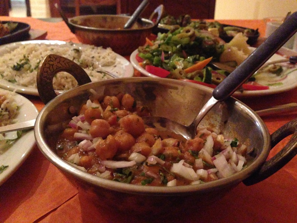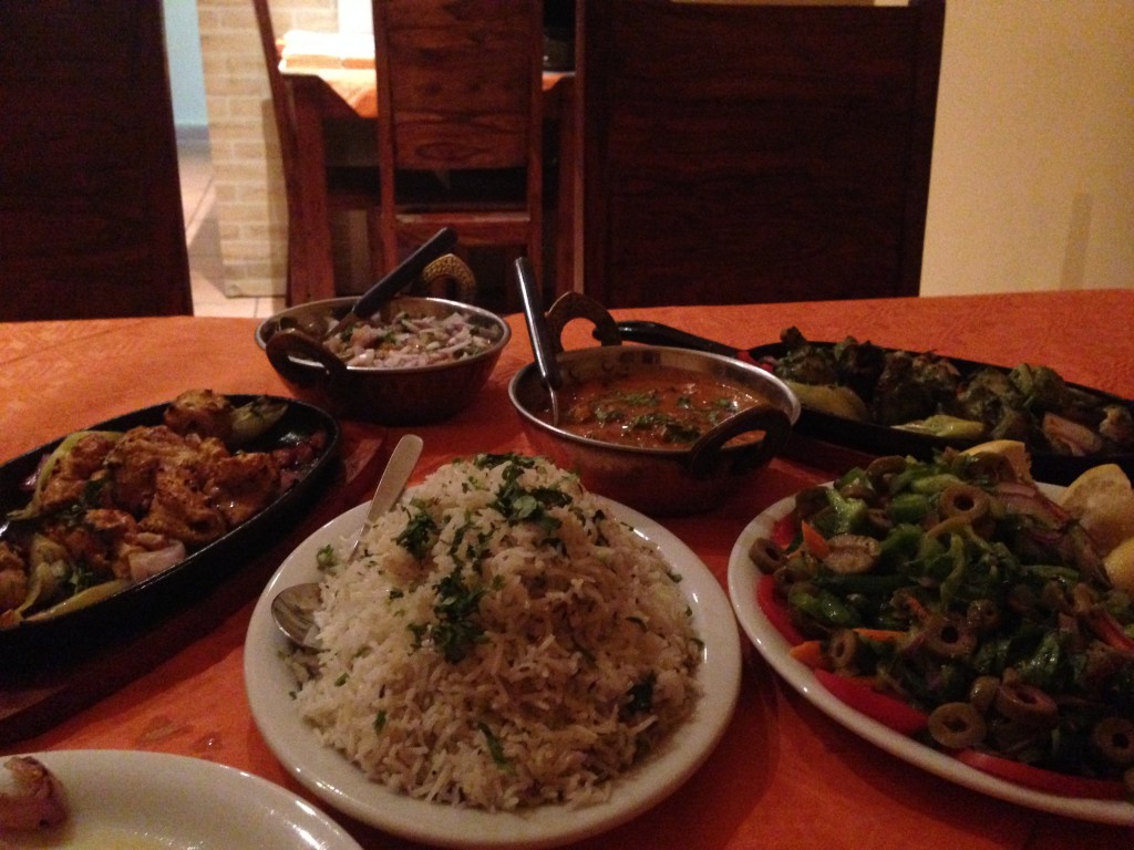 Τα πιάτα σερβίρονται κυριολεκτικά αχνιστά μπροστά σου. Απολαύσαμε ένα εξαιρετικό κεμπάπ μέντας – μαριναρισμένο κοτόπουλο, τρυφερό και αρωματικό. Στη δεύτερη φωτογραφία βλέπεις το Τσάνα Πίντι, δηλαδή ρεβύθια μαγειρεμένα με κρεμμύδι, ντομάτα, τζίνζερ, σκόρδο και μπαχαρικά. Δοκιμάσαμε επίσης το νούμερο 35 του καταλόγου, μεγάλα κομμάτια απο κοτόπουλο, μαριναρισμένο με σκόρδο, σάλτσα απο γιαούρτι και μείγμα ινδικών μπαχαρικών. Τρομερό. Το πόσο τρυφερά είναι γενικά τα κομμάτια κοτόπουλο θα σου κάνουν πολύ θετική εντύπωση όπως και το αρωματικό και σε γενναίες ποσότητες ρύζι που θα σου σερβίρουν.