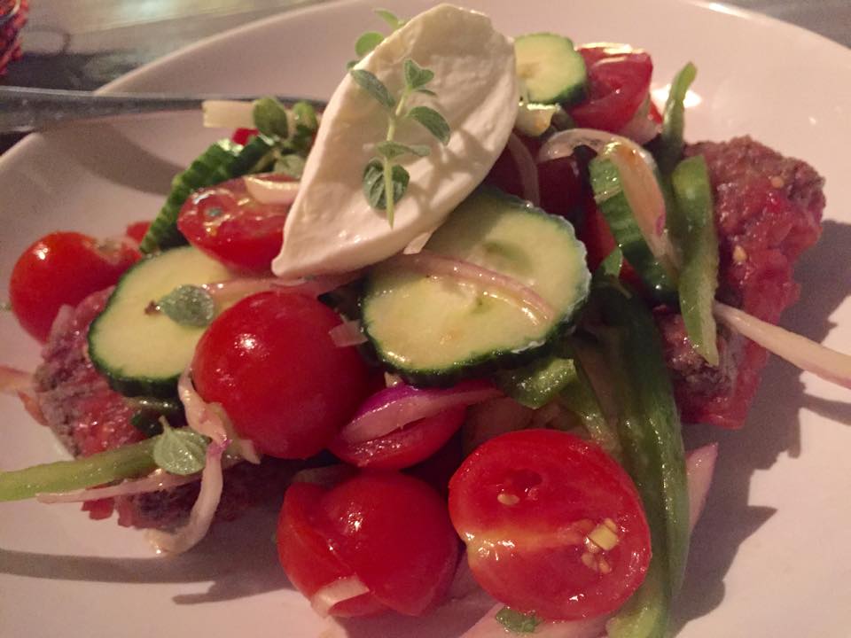Η Ρόζα μας περιποιείται σερβίροντας μια Mαλαγουζιά απο τους ορεινούς αμπελώνες του Τετράμυθου στην Αχαϊα, σημειώστε οτι το φθινόπωρο η λίστα οίνων της Kiki έχει αφιέρωμα στην Πελοπόνησσο. Ο Μπάμπης Ρούσσος – υπεύθυνος της κουζίνας παροτρύνει να δοκιμάσουμε ένα κροστίνι με καρέ ντομάτας, μυρωδικά και γαύρο μαρινάτο by Kiki. Η επίδειξη καλού φαγητού, άψογου service και εκλεκτών κρασιών συνεχίζεται με ένα πιάτο τραχανότου με σαλάμι Λευκάδος και πελτέ από ντοματάκι Σαντορίνης, φρέσκο κρεμμυδάκι και κοπανιστή Μυκόνου συνδυασμένο με μαλαγουζιά ‘Αρβανιτίδη’ αυτή τη φορά, αν και τα παιδιά μας είπαν οτι θα ταίριαζε ακόμη περισσότερο με ένα ροζέ ή ερθυρό κρασί. Ένα πιάτο τόσο απλό και τόσο γευστικό ταυτόχρονα. Αυτό είναι και το μυστικό της κουζίνας της Kiki. Πιάτα λιτά, τα οποία αναδεικνύουν κάθε υλικό τους, γεμάτα άρωμα και πλούσια σε γεύση. Ακολουθούν 2 ακόμη πιάτα, κροστίνι με προσούτο Ευρυτανίας, σύκο και γκοργκοντζόλα και το εκπληκτικό μοσχαράκι Ραγού με βελουτέ από φασόλια Πρεσπών. Σημαντική σημείωση για τον κατάλογο του Kiki είναι ότι ανανεώνεται 4 φορές το χρόνο. Κάθε εποχή έχει τα δικά τις αγαθά και με αυτά εμπλουτίζεται και η κουζίνα του εστιατορίου. Φρέσκα και εποχιακά υλικά είναι το tip του chef. Το ίδιο συμβαίνει και με τη λίστα κρασιών που όμως πάντοτε έχει ως θεματολογία ελληνικά μέρη. Με ένα μοσχάτο Λήμνου και πανακότα αρωματισμένη με μαστίχα και κουλί από φρέσκο σύκο κλείνει όμορφα ένας γευστικός κύκλος στο Kiki de Grece και μας αφήνει με τις καλύτερες εντυπώσεις.