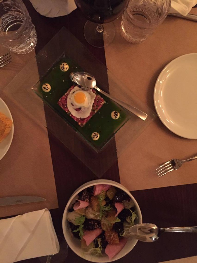 Η πρώτη μας γνωριμία με το μενού περιλαμβάνει κρύα και ωμά πιάτα. Δοκιμάσαμε tartare απο μοσχαρίσιο κόντρα με ξέραμενα wasabi και σόγια, άψογα συνδυασμένο με αυγό ορτυκιού. Ιδιαίτερα ορεκτικά και κυρίως πιάτα που συναντάμε γεύσεις απο φρέσκα ζυμαρικά, θαλασσινά, μοσχαρίσιο διάφραγμα με γλυκοπατάτα και ξινή κρέμα κάρυ. Δοκιμάστε ακόμα, κόκορα κρασάτο σε κενό αέρος με τραχανά και παλαιωμένη γραβιέρα Πάρου. Το προτείνουμε ανεπιφύλακτα. Τέλος για επιδόρπιο δοκιμάσαμε ένα εκμέκ κανταΐφι με κρέμα φυστίκι, αρωματισμένο με μέλι και αρμπαρόριζα. Τέλος, στην καρδιά της άνοιξης, σπεύσατε να κλείσετε τραπέζι στην υπέροχη, γεμάτη αρώματα και λουλούδια αυλή του Simul.
